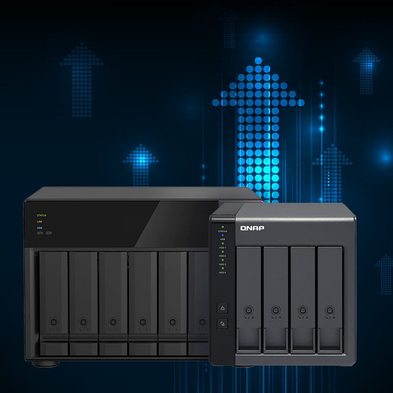 Escale de forma flexible la capacidad de almacenamiento total para que se adapte al crecimiento de la empresa conectando cajas de expansión de QNAP.