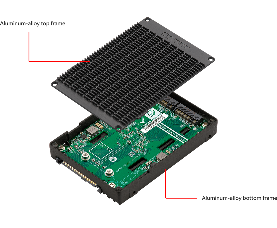 Le QDA-U2MP peut accueillir deux SSD M.2 NVMe PCIe 3.0 x4 dans une baie de lecteur SSD 2,5 pouces U.2 NVMe PCIe 3.0 x4 (SFF-8639). Aucun pilote de logiciel n’est requis pour le QDA-U2MP, et il peut être installé dans un(e) PC/station de travail (Windows®, Linux®) ou dans un NAS QNAP pour remplacer un SSD U.2 cher par des SSD M.2 plus abordables.