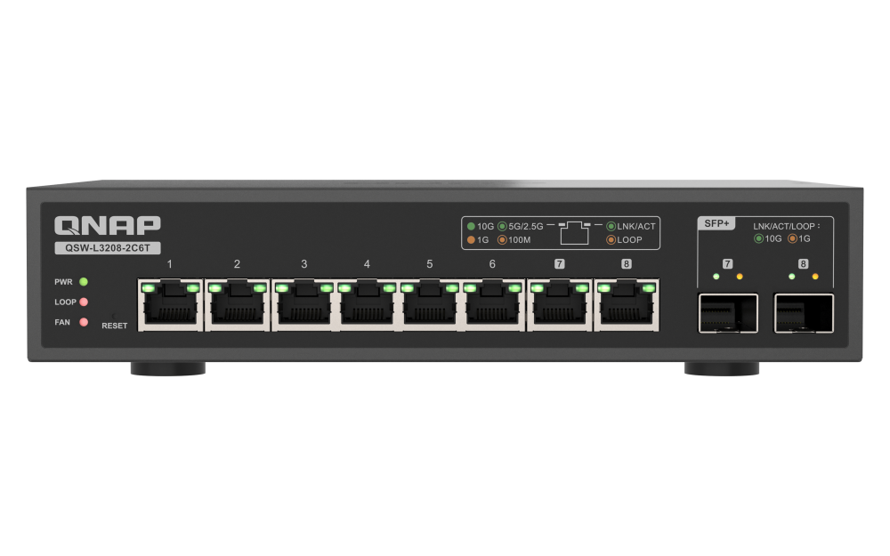 Par système : Alimentation/Boucle/VentilateurBoutons Bouton Réinitialiser Dimensions (H x L x P) 44 x 210 x 160 mm Poids (net) 1.29 kg Poids (brut) 2.61 kg Température de fonctionnement 0 à 40°C (32 à 104°F) Humidité relative 0~90% sans condensation Certifications CE, UKCA, FCC, IC, VCCI, RCM, BSMI, LVD, KC Conformité électromagnétique CLASS A Jumbo Frames 12K Garantie 2 ans Remarque : QNAP se réserve le droit de remplacer des pièces ou accessoires partiels si les originaux ne sont plus disponibles auprès du fabricant/fournisseur. Tout remplacement sera entièrement testé et vérifié pour répondre à des normes strictes de compatibilité et de stabilité, offrant une performance identique à l'original.