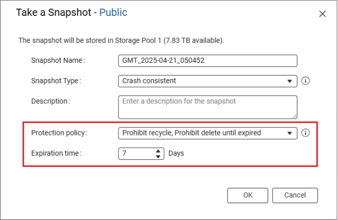 You can now make your snapshots immutable for extra protection against accidental modifications or malicious tampering such as ransomware attacks. When taking or editing a snapshot, or creating a local snapshot schedule, you can select a protection policy that prohibits automatic deletion by the system and/or manual deletion by a user. You can also specify the expiration time for the prohibition.