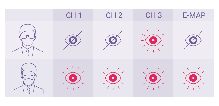 La notification d'événements offre plusieurs façons d'être averti des événements en cours, dont les bordures rouges clignotantes des canaux, les signaux sonores d'alerte, et l'icône de mouvement sur l'e-map.