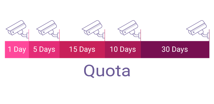Allouez au préalable la capacité de stockage et attribuez un espace de stockage dédié pour les enregistrements de chaque caméra en fonction du champ de surveillance et de l'importance de la caméra. De plus, vous pouvez définir le nombre maximal et minimal de jours d'enregistrement pour chaque caméra et obtenir en un clin œil une vue d'ensemble d'utilisation de tous les espaces d'enregistrement vidéo.