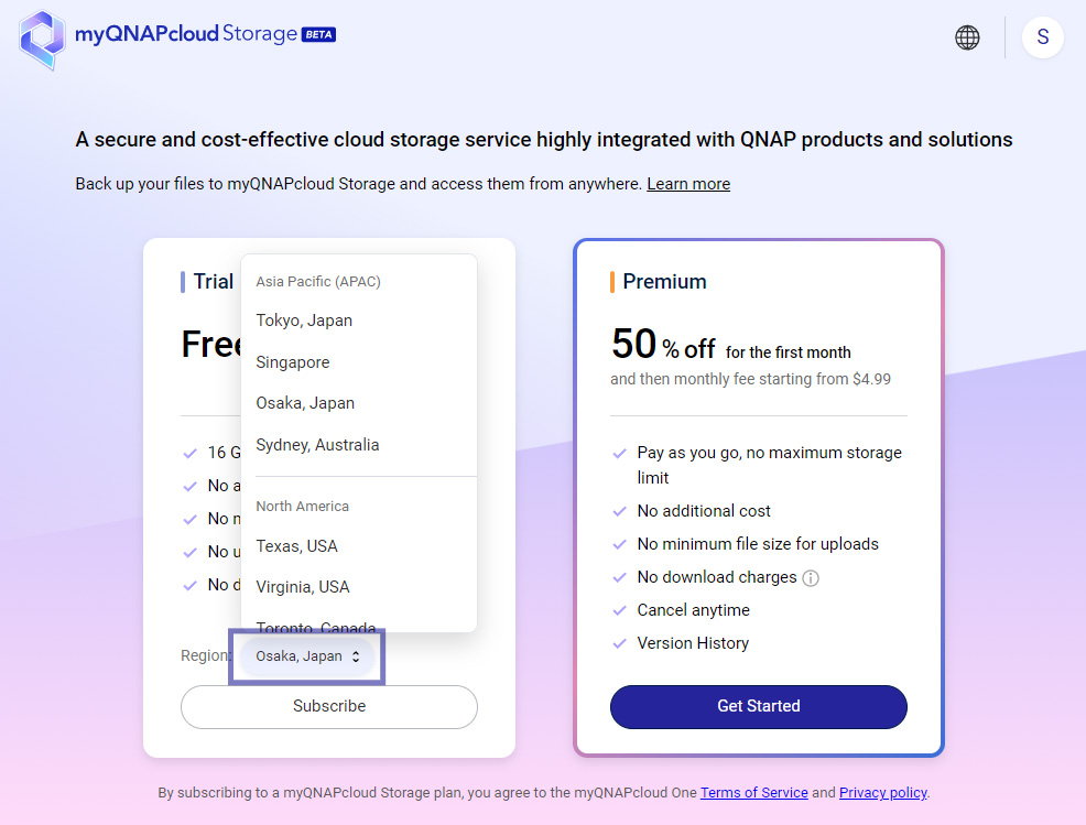 myQNAPcloud storage is QNAP-hosted cloud storage designed as a perfect backup destination for QNAP NAS users. Every QNAP Account is entitled to 16 GB free storage as standard, and you will receive an additional 100 GB storage space.