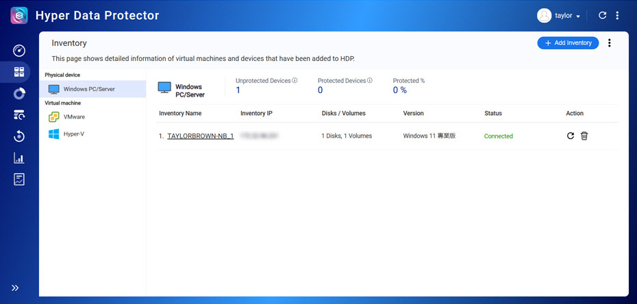 After logging in, Netback PC Agent automatically creates an inventory in HDP for your PC/server. An HDP inventory stores configuration and connection information for your PC/server and allows you to easily manage your backups.