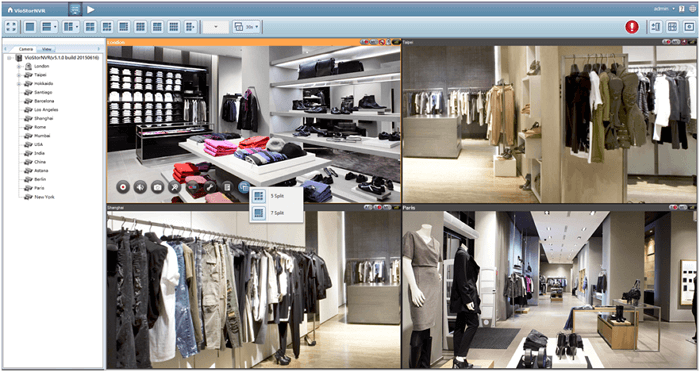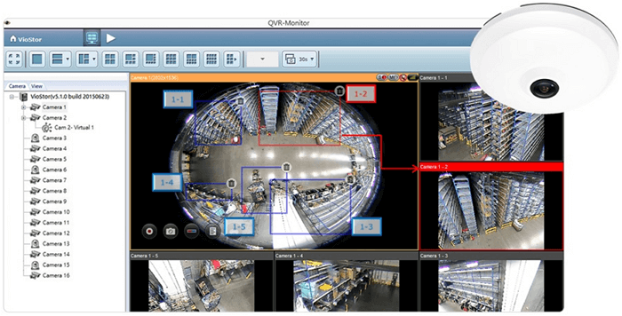 If the camera is a fisheye camera, draw regions of interest on the main channel and they will be reflected in the inset windows. You can see the original image and multiple dewarped images in one view.