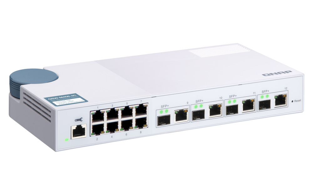 Management Type Web Managed Number of Ports 12 10GbE SFP+/RJ45 Combo Ports 4 Note: The 10GbE SFP+ ports are backward compatible with 1GbE SFP; the RJ45 (copper) combo port supports up to five speeds (10G/5G/2.5G/1G/100M).1GbE (RJ45) 8 Power Supply Description Adapter Max. Power Consumption 31.46 W Input Power Type AC Input Voltage Range 100-240VAC, 50/60 Hz MAC Address Table 16K Total Non-Blocking Throughput 48Gbps Switching Capacity 96Gbps Management Interface Web Console RJ45 Fan PWM double ball bearing fan x 1 Supported Standards IEEE 802.3 Ethernet