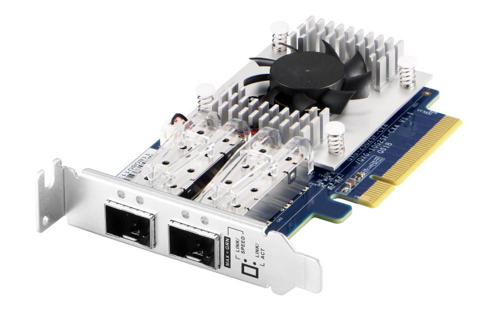IEEE 802.1Q, 802.1p VLAN tags and priorityRögzítőkeret Low-profile bracket pre-installed; full-height and specialized (for selected QNAP NAS) brackets are bundled SR-IOV támogatás RDMA over Converged Ethernet (RoCE), Zero Touch RoCE (ZTR) támogatás VLAN csatlakoztatás/leválasztás támogatása iSER támogatás NVGRE, VXLAN, Geneve támogatás Hány virtuális funkció 256 Hány fizikai funkció hostonként 8 Támogatott NAS operációs rendszerek QTS/QuTS hero (recommend an upgrade to the latest version); Windows (Driver required); Linux (Driver required) Támogatott QNAP NAS Models with PCIe slot(s) (1 free slot required) Támogatja az Ubuntu kereskedelmi Linux disztribúcióit Ubuntu 18.04/20.04 Windows támogatás Windows 8/10 Support Windows Server Windows Server 2016/2019 Port és kábel SFP28 DAC cable (3M) or SFP28 OPTIC transceiver Package Contents 1 x Network card; 1 x QIG; 3 x Brackets Standard Warranty 3 years Note: QNAP reserves the right to replace partial parts or accessories if the original is no longer available from its manufacturer/supplier. Any replacement would be fully tested and verified to meet strict compatibility and stability guidelines and will deliver identical performance to the original.