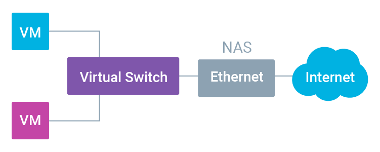 Virtual Switch connects physical ports with Virtual Machines and Containers running on NAS and supports TCP/IP, IPv6, Wi-Fi and Thunderbolt interface protocols. Virtual Switch not only offers central management over LAN, WAN, wired and wireless networking on NAS, but also allocates network resources for virtual machines and containers in Virtualization Station and Container Station, allowing for the deployment of a highly-efficient and secure virtual network on NAS.