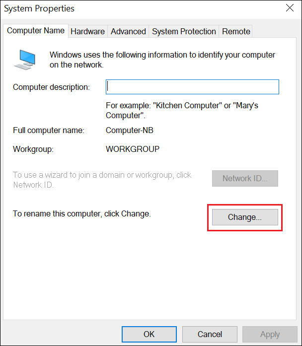 Viene aperta la finestra Proprietà sistema. - Nella scheda Nome del computer, fare clic su Cambia...