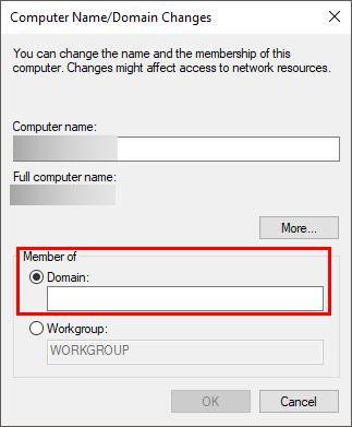 - In Membro di, inserire il nome di dominio del server AD nel campo Dominio.