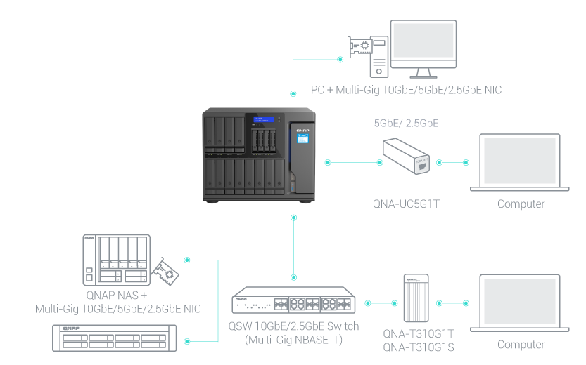 Per saperne di più: Soluzioni QNAP 2,5GbE, Soluzioni QNAP 10GbE, Switch della serie QSW economici