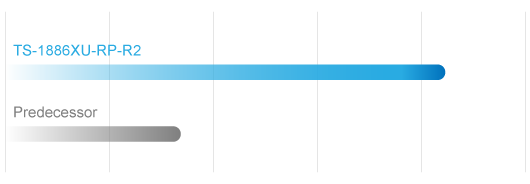 Rispetto al modello precedente, la velocità di trasmissione dei dati del TS-h1886XU-RP R2 è aumentata del 250% per poter gestire più attività aziendali importanti.
