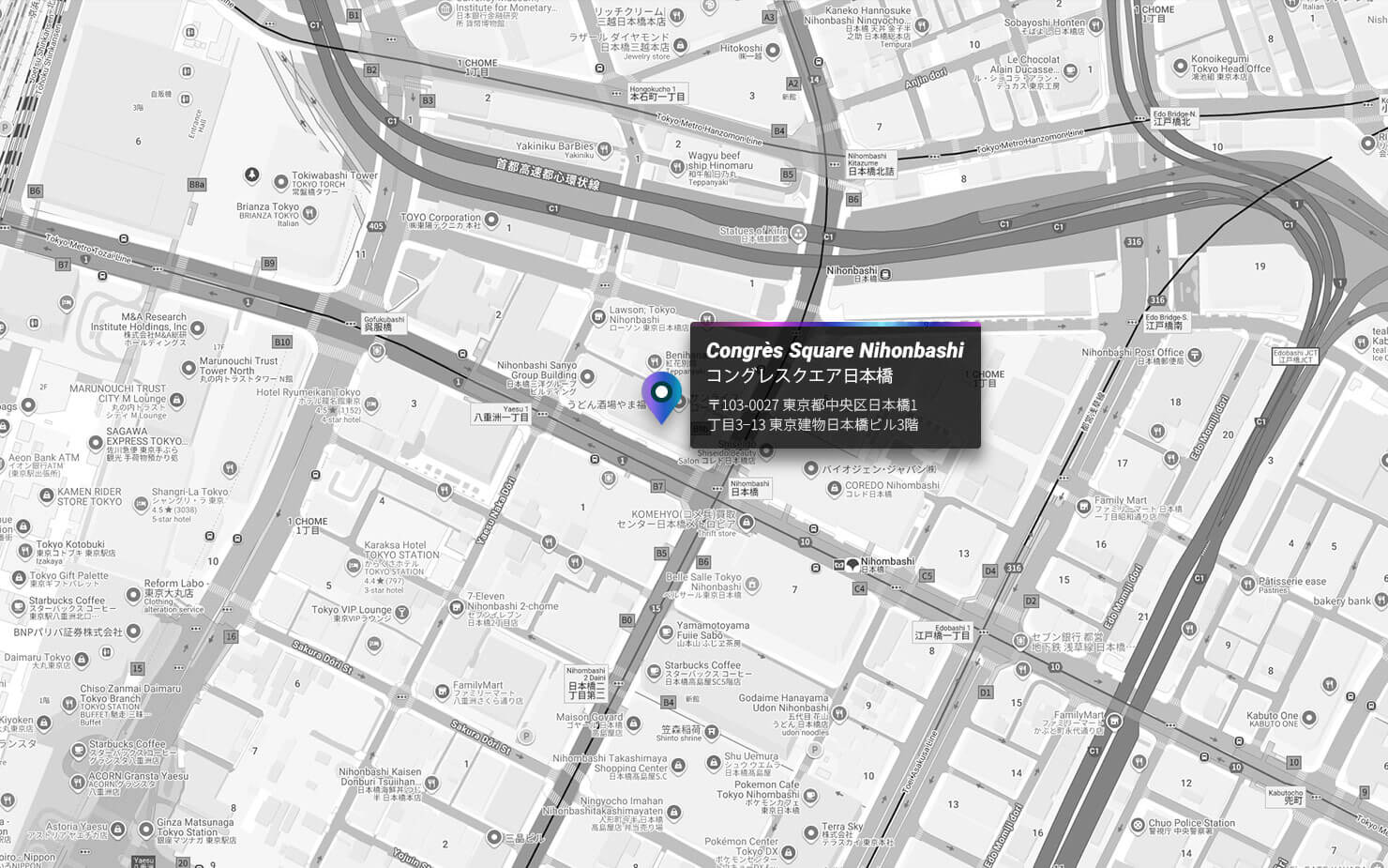 (コングレスクエア日本橋)〒103-0027 東京都中央区日本橋1丁目3−13 東京建物日本橋ビル3階