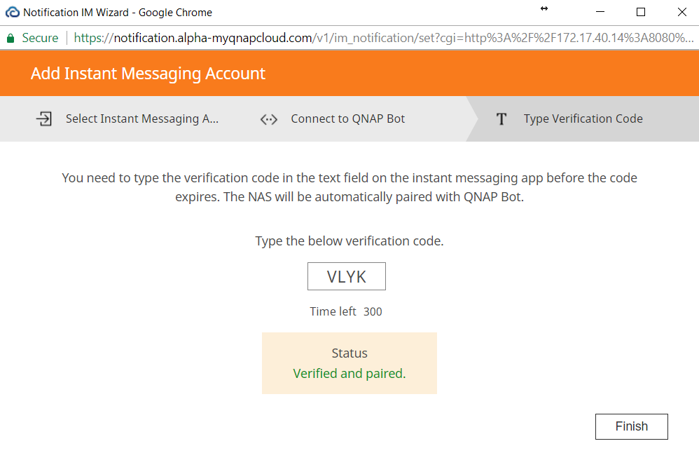 - [通知センター]>[サービスアカウントおよびデバイスのペアリング]に移動し、[IMアカウントの追加]を選択します。[通知IMウィザード]ウィンドウが開きます。
