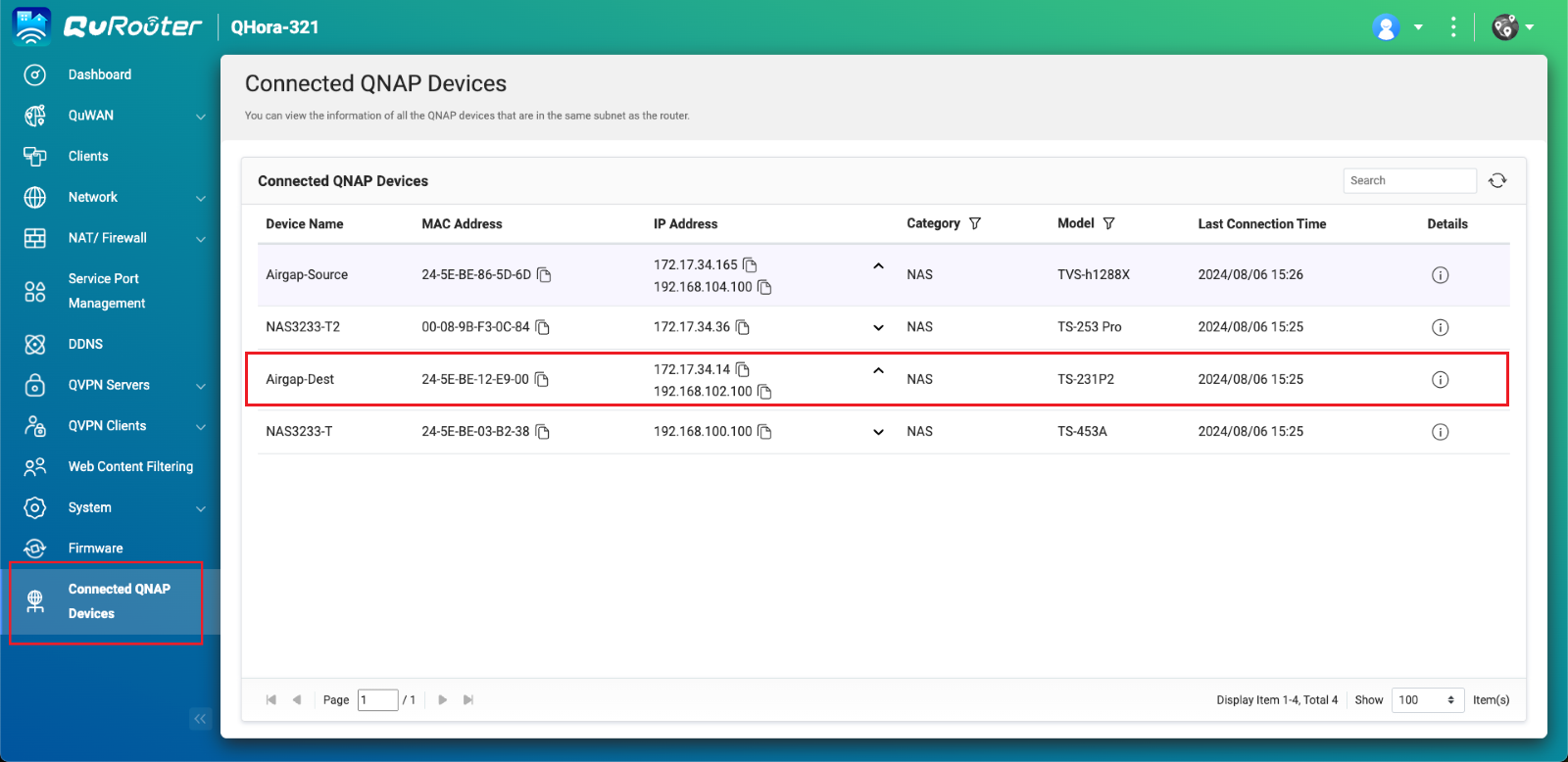 1. QuRouterで[接続されている QNAP デバイス]に進みます。