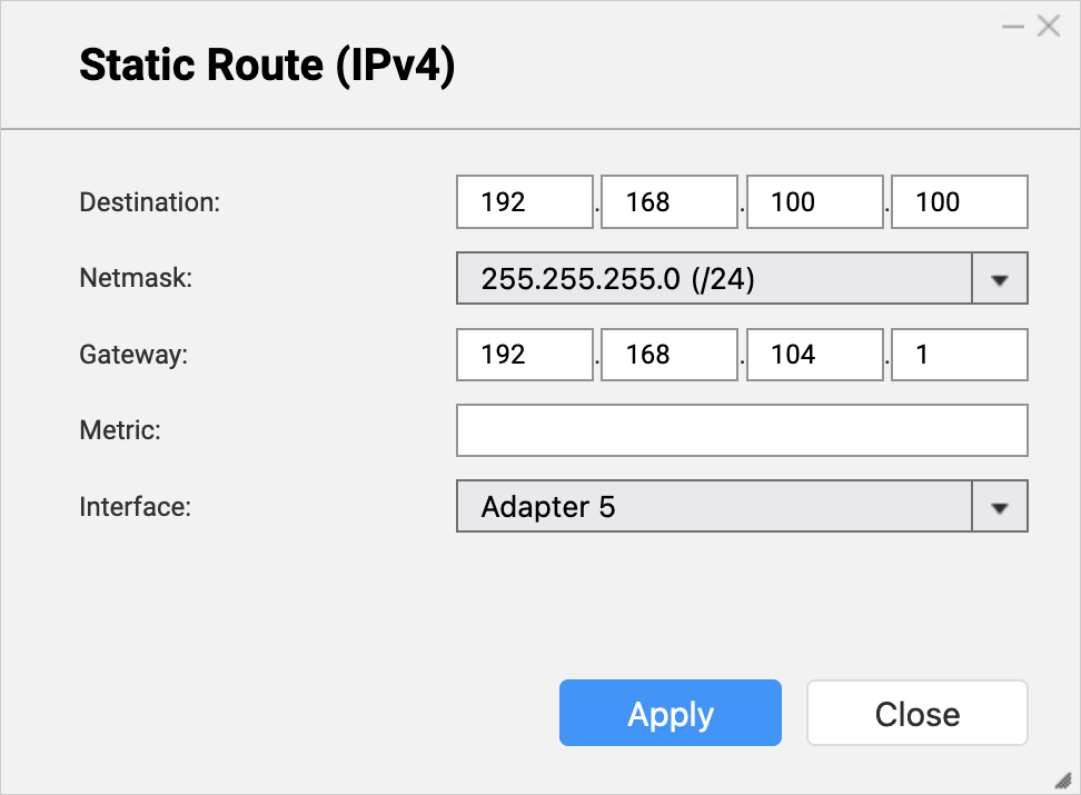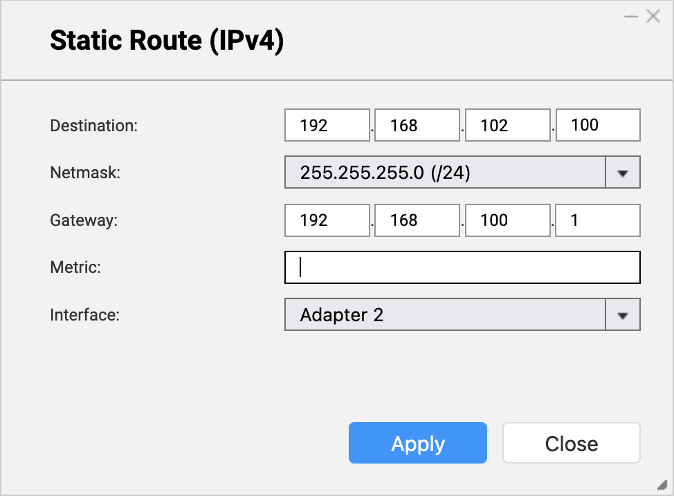 10. ソースNASに接続するためのブリッジNASの静的ルートルールからゲートウェイIPアドレスを入力します(手順B-6eを参照)。
