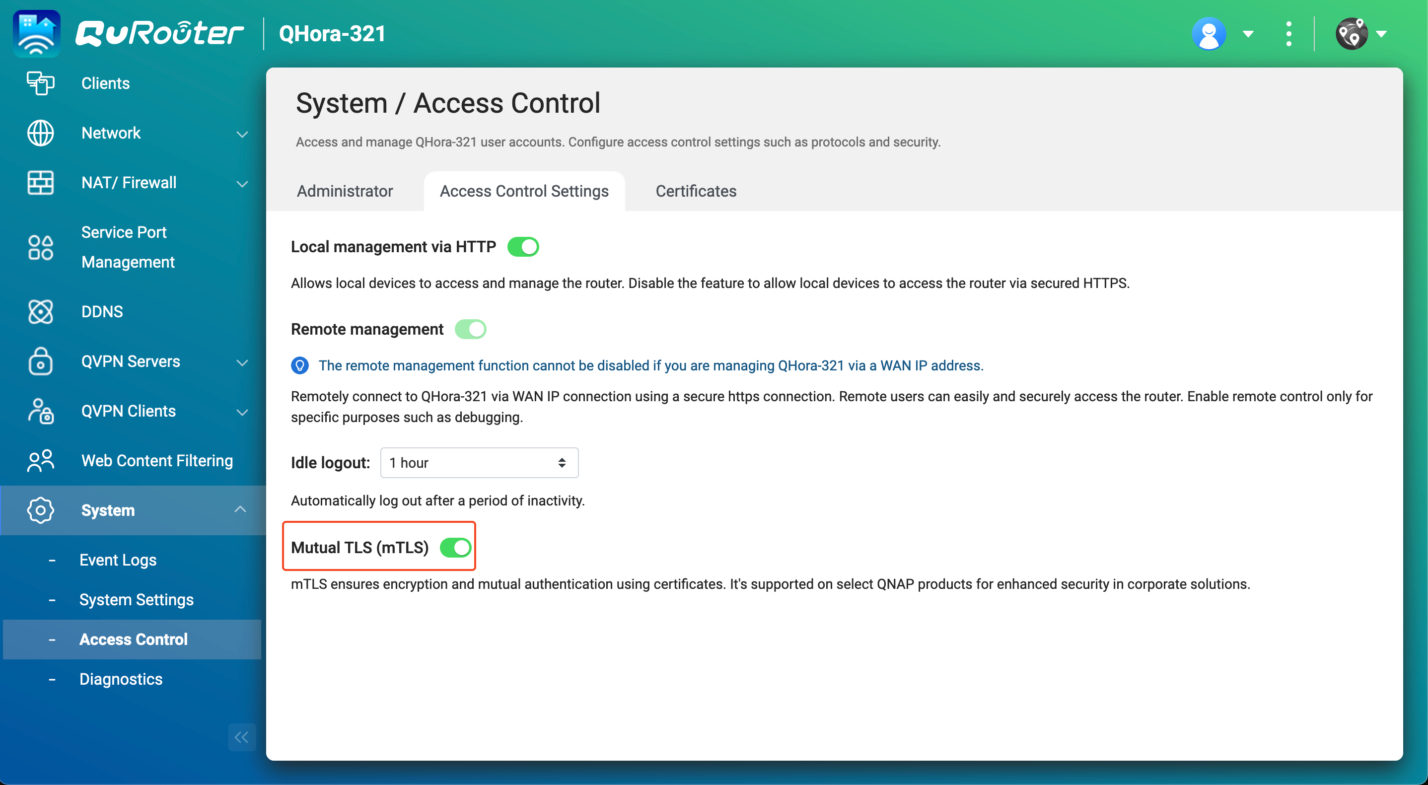 2. ルーターで相互TLS接続を有効にします。