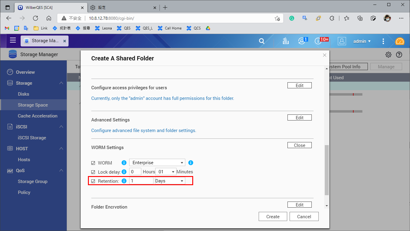 Use QNAP Enterprise Storage ES NAS to create WORM shared folder - Windows