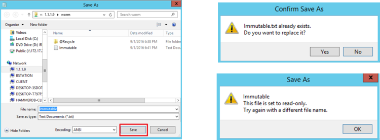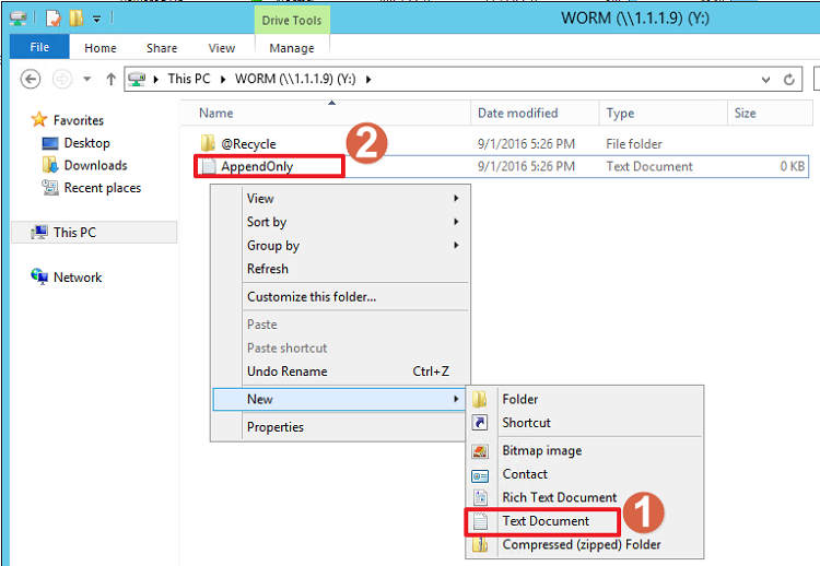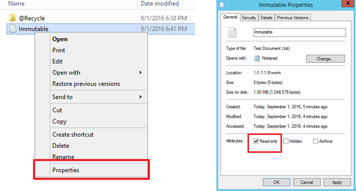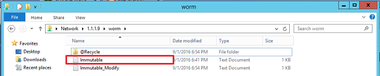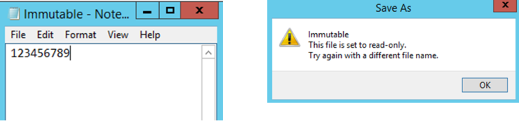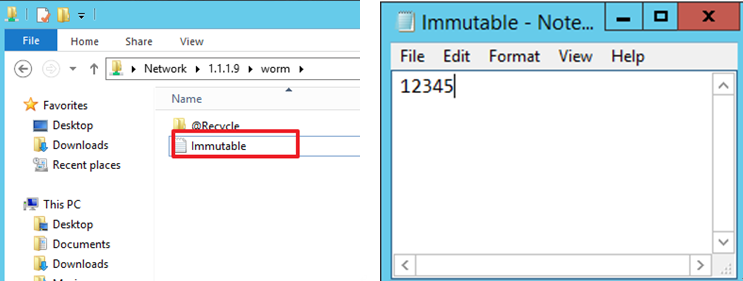 Step 1: In the WORM folder, create an empty Notepad file named "Immutable". Open this file, enter the number "12345", and then save the file.