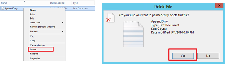Append Only | In Windows: the file is empty and the file attribute is set to Read-only, then the file is “Append Only”. |
