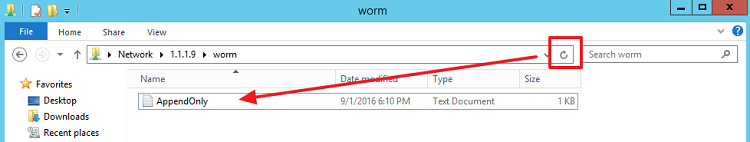 Step 3: Click the refresh button in the top-right corner. The “AppendOnly” file will appear again, confirming that the file cannot be deleted in the Append Only state.
