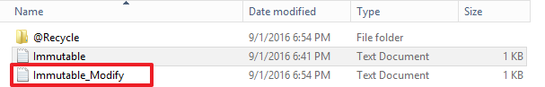 Immutable | In Windows: there is data inside the file, and the file attribute is set to Read-only, then the file is “Immutable”. |