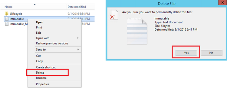 Step 1: Right click on the “Immutable” file, select “Delete”, and click “Yes” to confirm deletion.