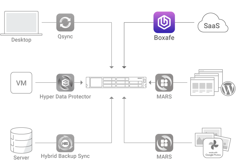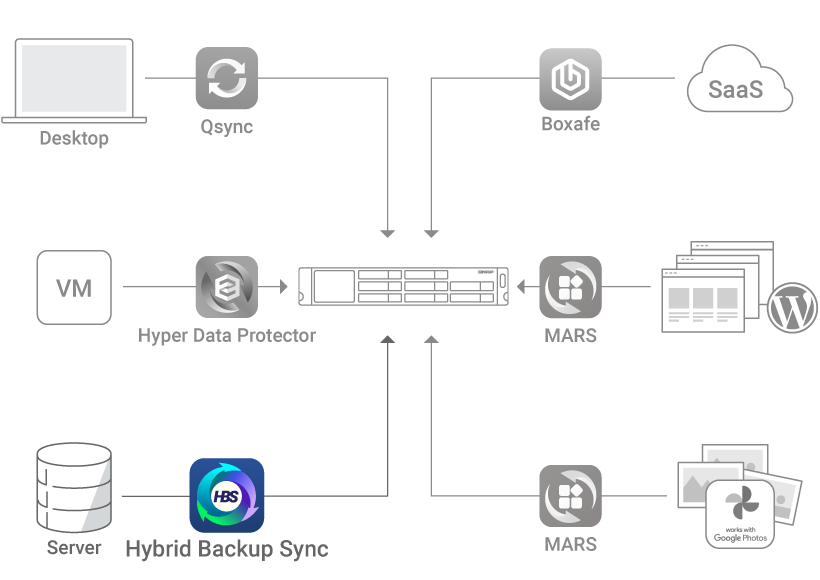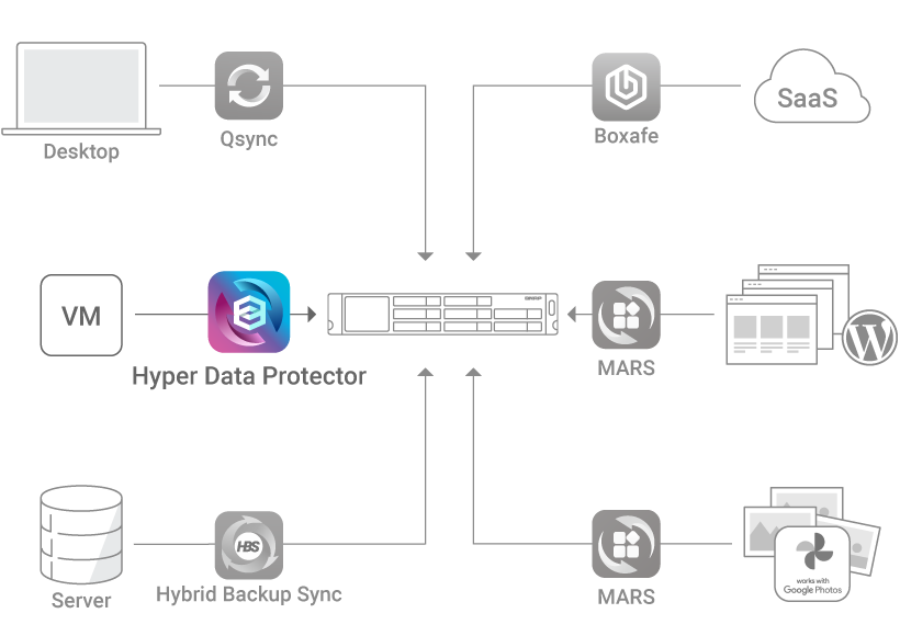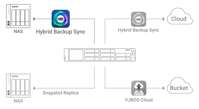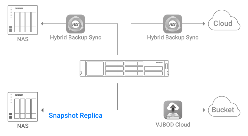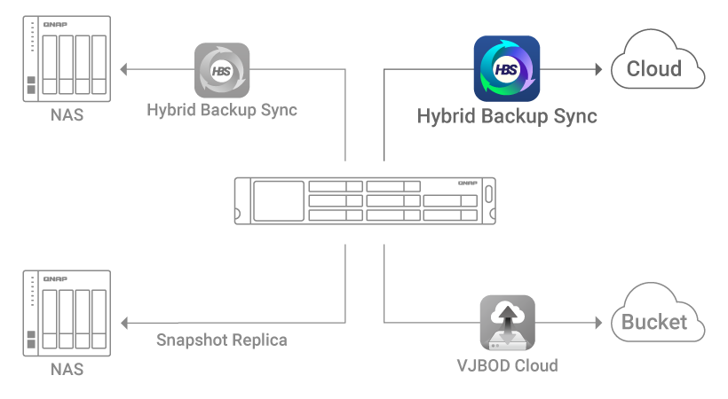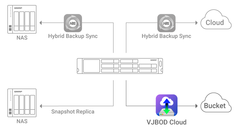 TS-855eU-RP에서 여러 가상 시스템과 컨테이너를 실행하면 멀티 테넌트 환경 및 애플리케이션을 배포하여 관리 효율성을 높이고 하드웨어 비용을 절감할 수 있습니다. 가상 시스템, 컨테이너, QNAP NAS 및 네트워크의 기타 물리적 장치 간의 상호 운용성을 향상시켜 물리적 네트워크 리소스와 가상 네트워크 리소스를 유연하게 할당함으로써 네트워크 구축을 간소화할 수 있는 네트워크 & 가상 스위치 앱과 결합됩니다.