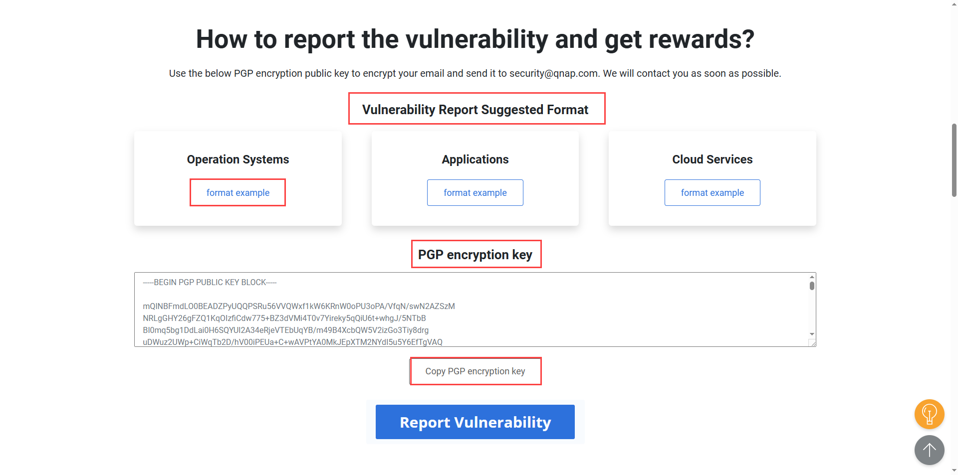 . - Scroll down to the Vulnerability Report Suggested Format section on the QNAP Security Bounty Program page.