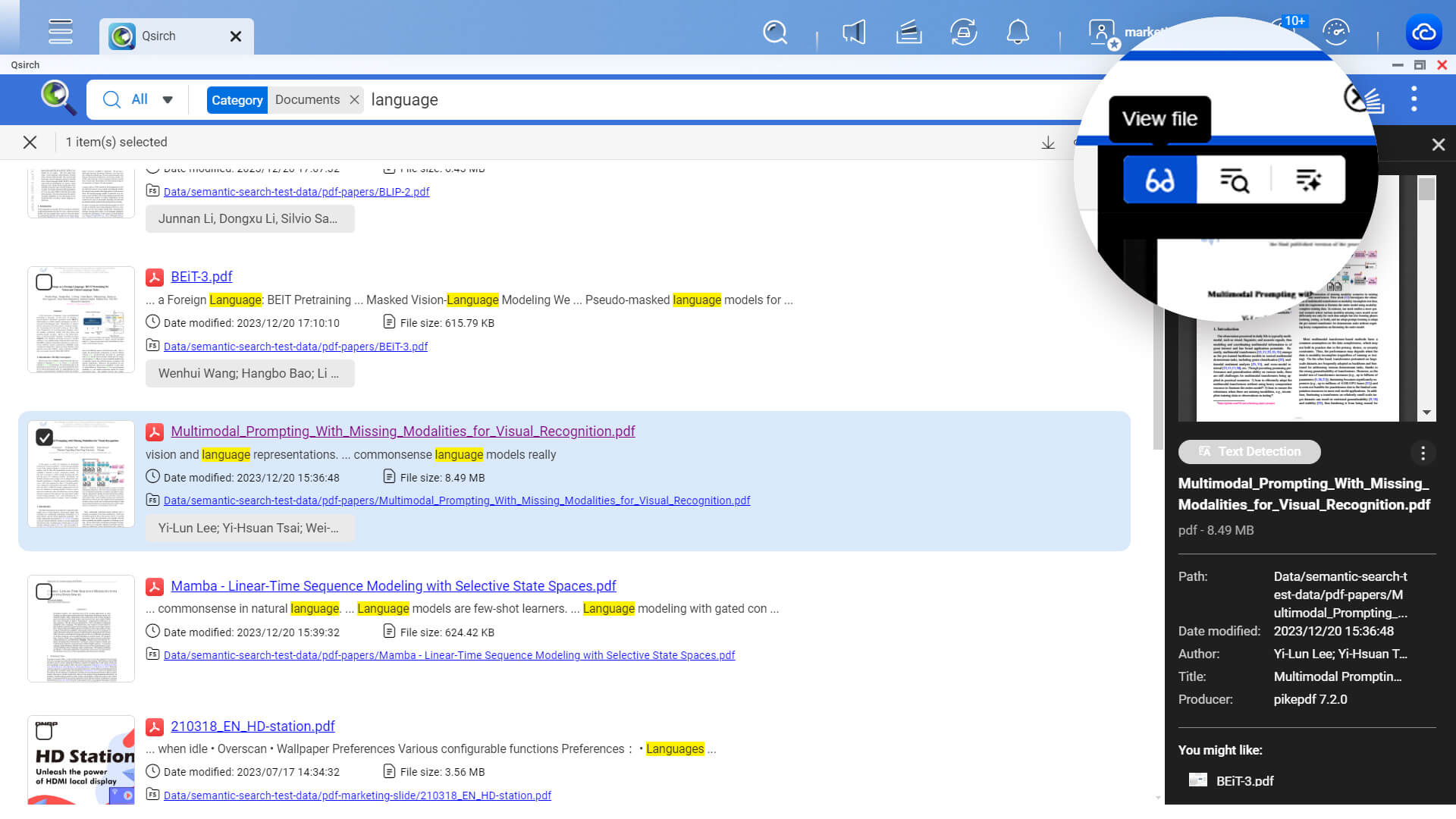 Qsirch is een krachtige zoekmachine die exclusief is ontworpen voor QNAP NAS. Met behulp van een intuïtieve interface kunt u eenvoudig schakelen tussen algemeen zoeken (trefwoord/AI semantisch zoeken) of RAG-zoeken om snel bestanden te vinden die zijn opgeslagen op uw NAS en een geavanceerde data analyse-ervaring te krijgen.