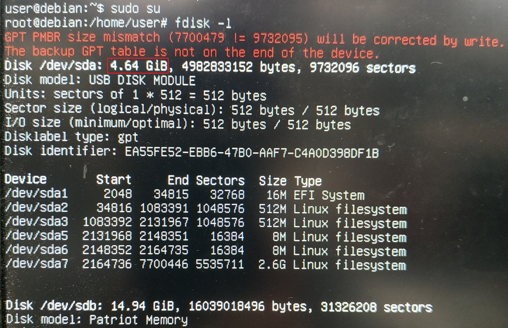 Partition Description /dev/sda The USB boot device /dev/mmcblk0 The DOM (Disk On Module) - TS-251B, TS-253B, TS-453B, TS-653B, TS-253Be, TS-453Be: