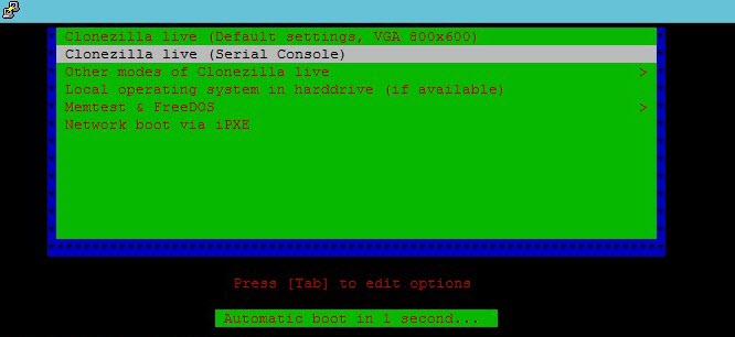 - If your monitor is connected to the NAS via a com port, then select Clonezilla Live (Serial Console).