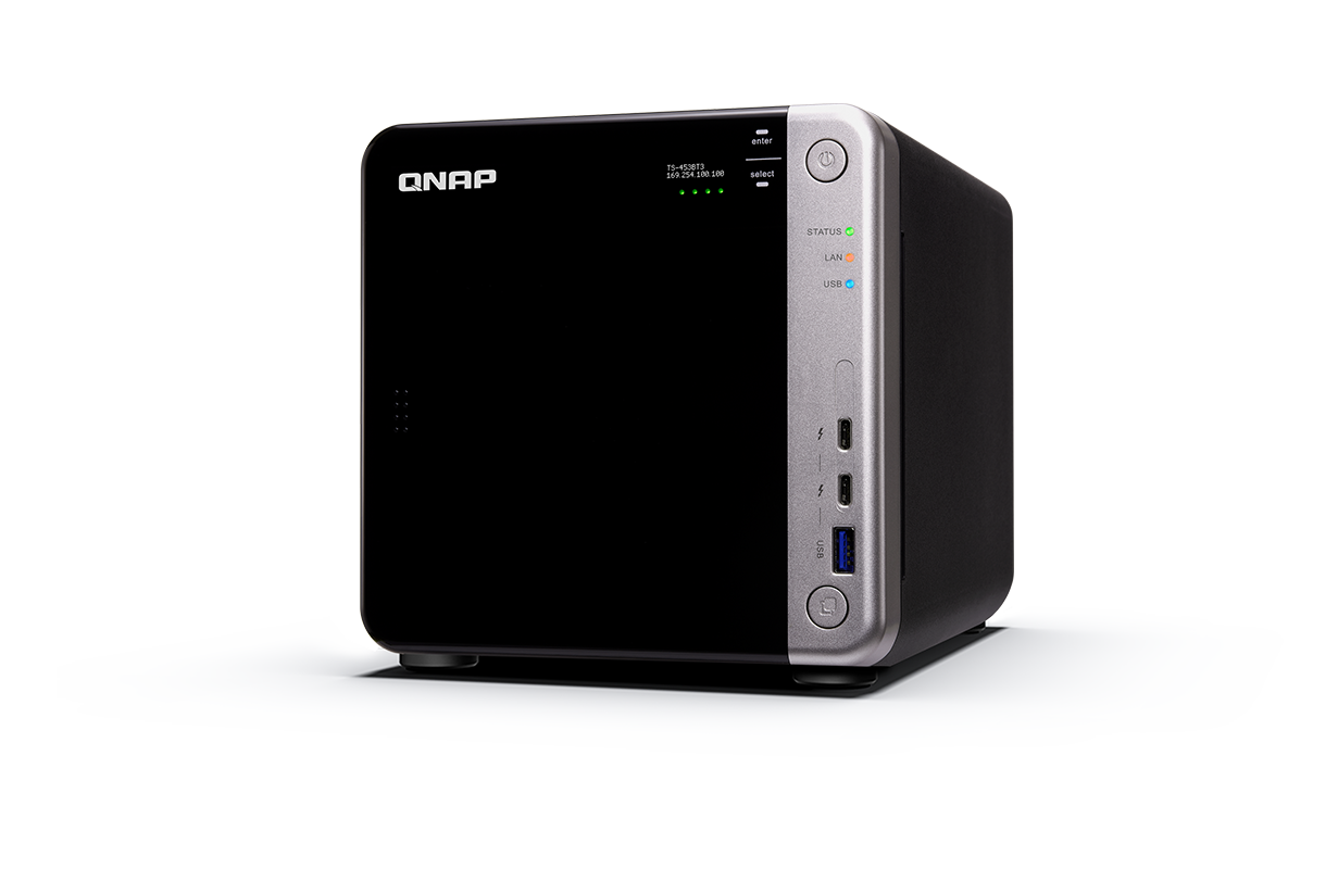 Wyposażony w porty Thunderbolt™ 3, w połączeniu z pamięcią podręczną M.2 SATA SSD i funkcją połączenia 10GBASE-T, model the TS-453BT3 zapewnia idealne środowisko dla profesjonalnych funkcji edycji i szybkiego udostępniania plików współpracujących ze sobą multimediów. Model TS-453BT3 charakteryzuje się eleganckim nowym wyglądem i oferuje panel OLED oraz dwa pojemnościowe przyciski dotykowe. Dzięki zaawansowanym możliwościom osprzętu i bogatym w funkcje aplikacjom użytkowym model TS-453BT3 stanowi najlepsze rozwiązanie NAS dla studiów multimedialnych lub małych, kreatywnych grup pracowników chcących znacznie uprościć przepływ pracy.
