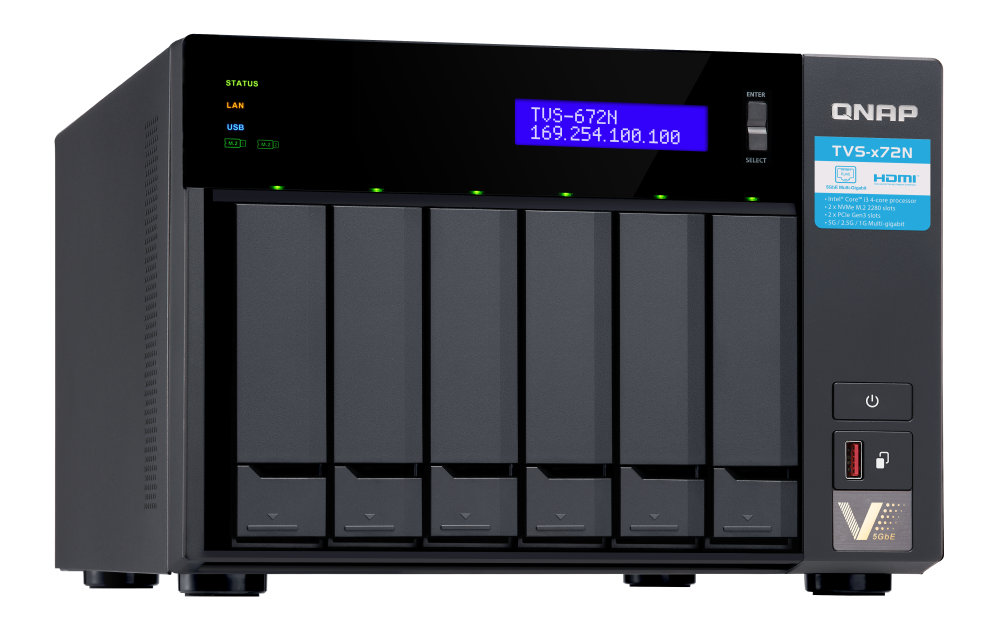 2,5-calowe dyski SSD SATAWymieniany podczas pracy (Nieobsługiwane M.2 SSD) Gniazdo M.2 2 gniazda M.2 2280 PCIe Gen3 x2 Kompatybilne z dyskami NVMe SSD PCIe Gen 3 & Gen 4. Zweryfikuj listę https://www.qnap.com/compatibility/ kompatybilności.Obsługa przyspieszenia pamięci podręcznej SSD GPU pass-through Port Gigabit sieci Ethernet (RJ45) 2 Port 5 Gigabit Ethernet (5G/2,5G/1G/100M) 1 x 5GbE(5G/2,5G/1G/100M) Wake on LAN (WOL) Ramka Jumbo Gniazdo PCIe 2