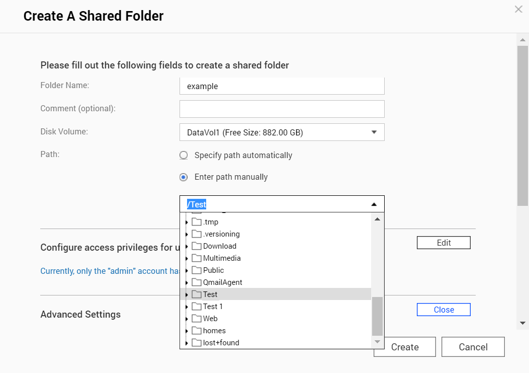 - Em Caminho, selecione “Acessar caminho manualmente” e selecione a pasta compartilhada excluída.