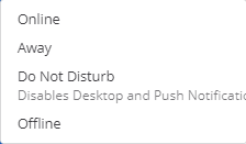 Quando você clica em seu avatar na parte superior da lista de canais, um menu suspenso será exibido. Você pode definir seu status como on-line, ausente ou off-line selecionando um status nesse menu.