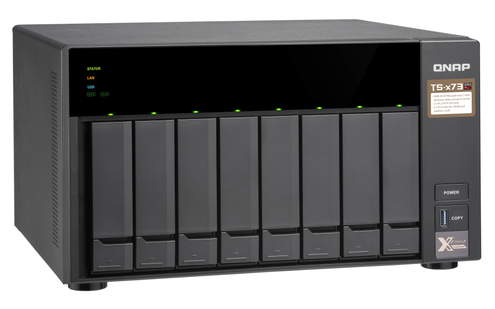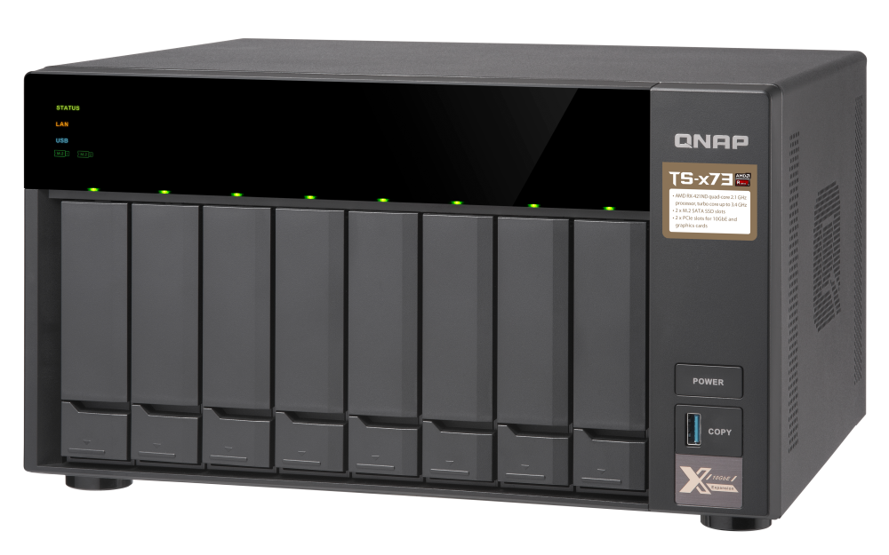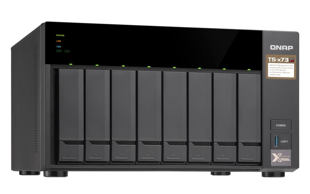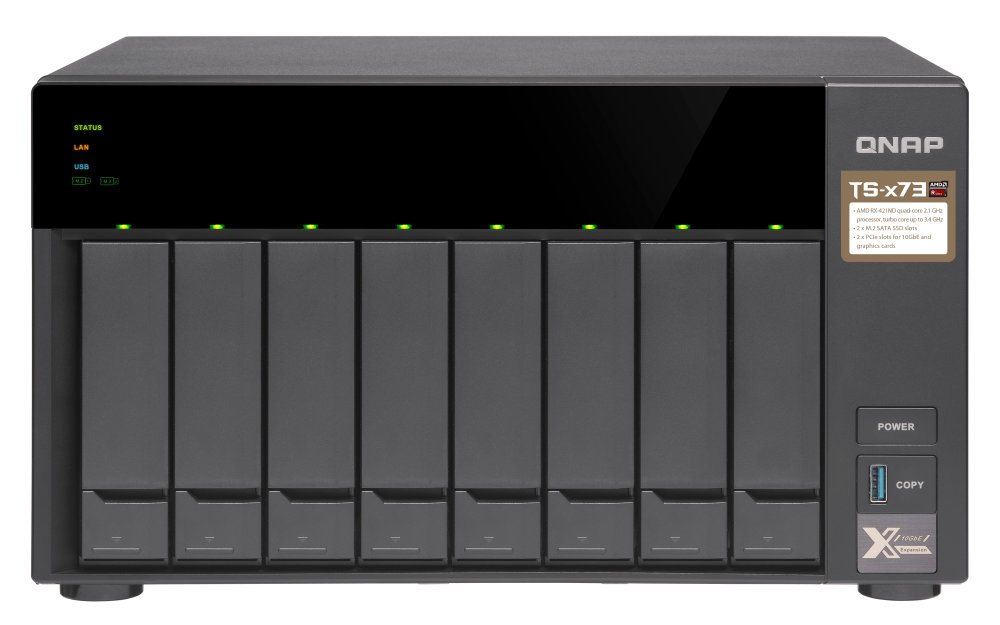 CPU Processador AMD R-Series RX-421ND de 4 núcleos de 2,1 GHz (Turbo Core até 3,4 GHz) Arquitetura da CPU x86 de 64 bits Processadores gráficos Opcional através de um adaptador PCIe Unidade de ponto flutuante Motor de encriptação (AES-NI) Transcodificação de aceleração de hardware Opcional através de um adaptador PCIe Memória do sistema SODIMM DDR4 de 8 GB (2 × 4 GB) Memória máxima 64 GB (4 × 16 GB) Ranhura de memória 4 módulos SODIMM DDR4 Para configurações dual ou quad-DIMM, deve utilizar um par de módulos de DDR4 idênticos.Memória Flash 512 MB (Proteção de SO de arranque duplo) Compartimentos de unidades 8 compartimentos de unidades SATA, 6 Gb/s, 3 Gb/s de 3,5 polegadas Compatibilidade de unidades Unidades de disco rígido SATA de 3,5 polegadas