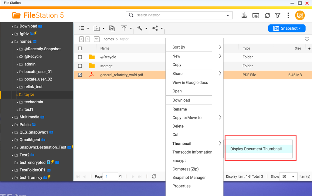 Para mais detalhes, consulte os passos anteriores nesta FAQ. - Ativar a exibição de miniaturas em File Station .