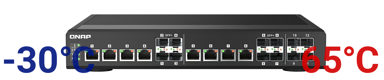 O robusto switch gerido de 10 GbE com 12 portas QSW-IM1200-8C tem quatro portas de fibra SFP+ de 10 GbE, oito portas combinadas SFP+/RJ45 de 10 GbE e suporta comutação de camada 2 e gestão de rede para fornecer uma solução de gestão de rede de nível básico fácil de utilizar. Com um robusto design de hardware de nível industrial e temperaturas de funcionamento de -30 ~ 65 °C em ambientes arejados (0,5 ~ 0,7 m/s) ou -30 ~ 45 °C em espaços fechados, o QSW-IM1200-8C permite a implementação de redes de alta velocidade nos ambientes robustos da Indústria 4.0, transportes inteligentes e cidades inteligentes. O QSW-IM1200-8C é fabricado em Taiwan (MIT), fornecendo uma solução de rede fiável e de alta qualidade.
