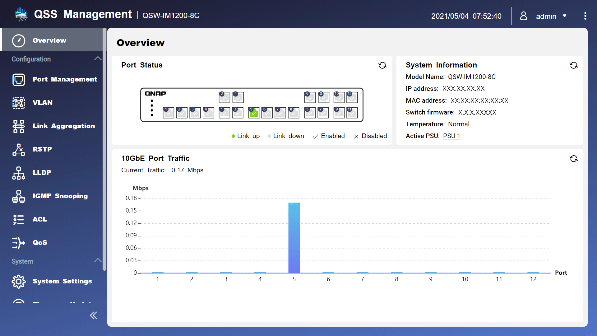 O QSW-IM1200-8C fornece funcionalidades de gestão de camada 2, tais como LACP, VLAN, ACL e LLDP, para que os utilizadores controlem eficazmente a largura de banda da rede e aumentem a segurança.