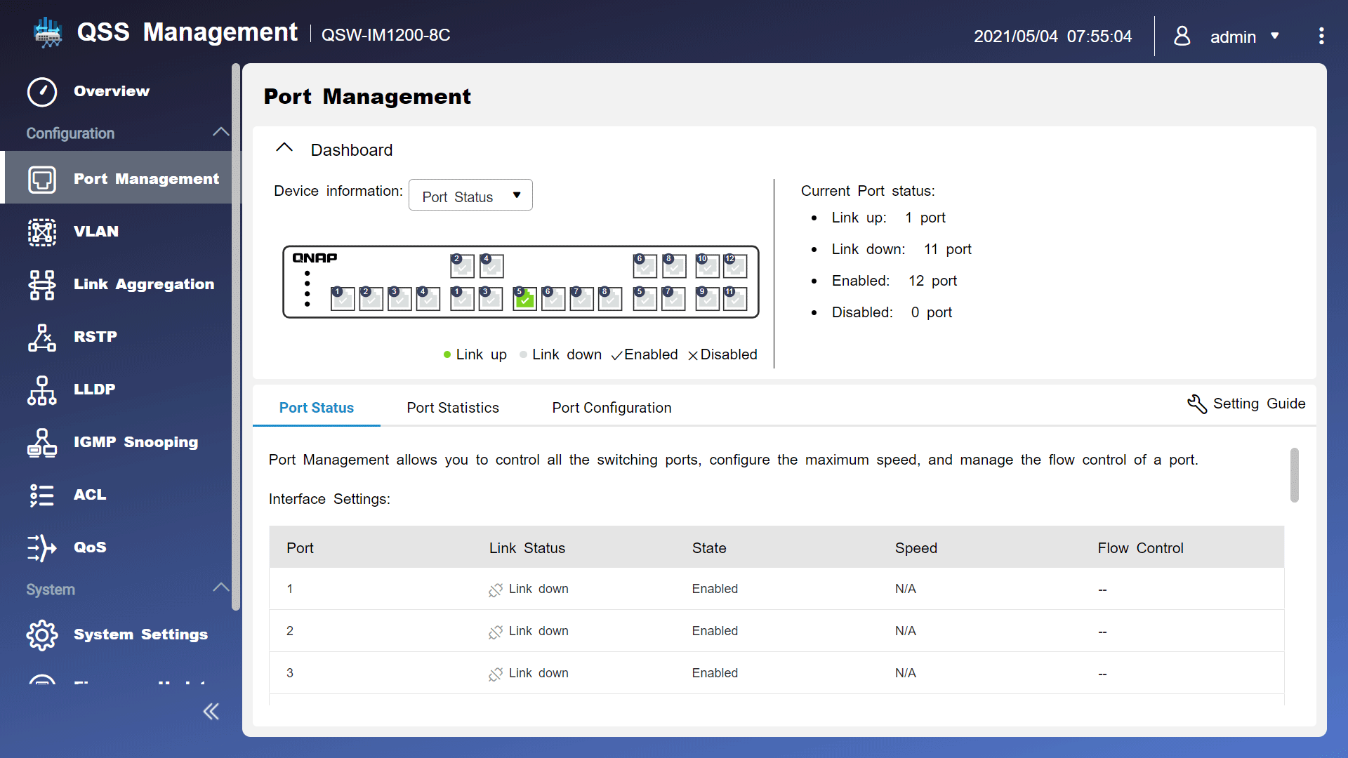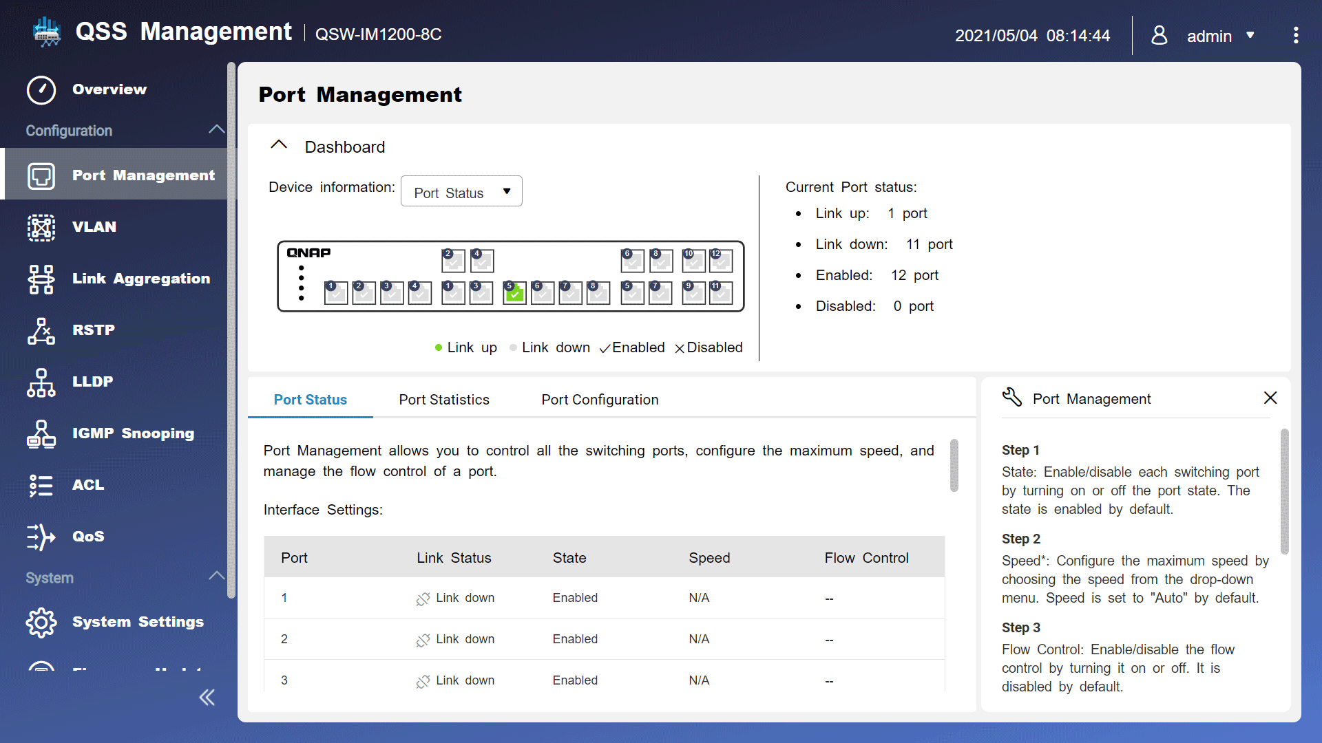 O QSS fornece um painel geral, gestão de portas e guia de configuração para ajudar os utilizadores a controlar as redes de camada 2.