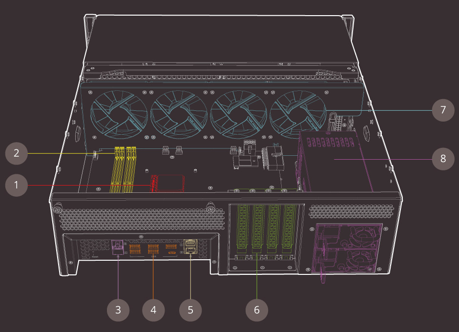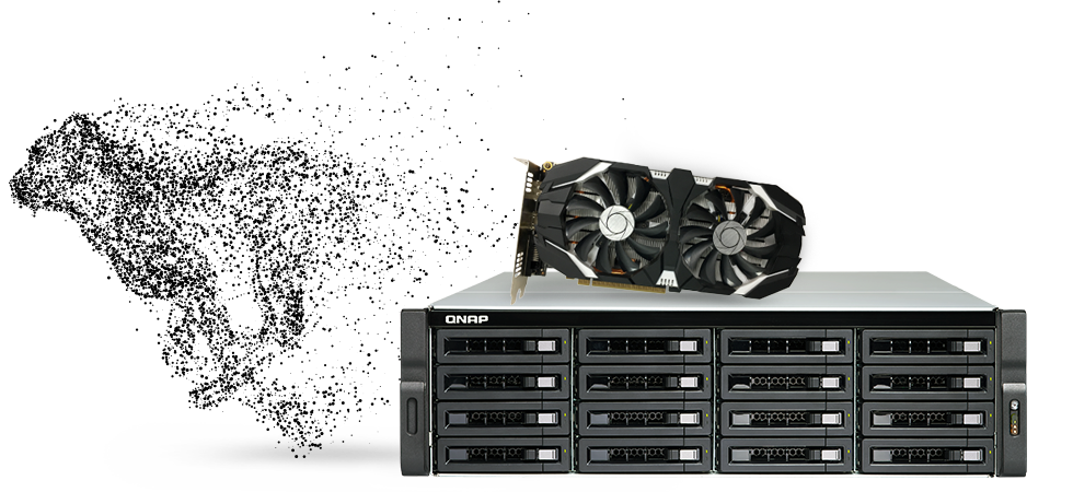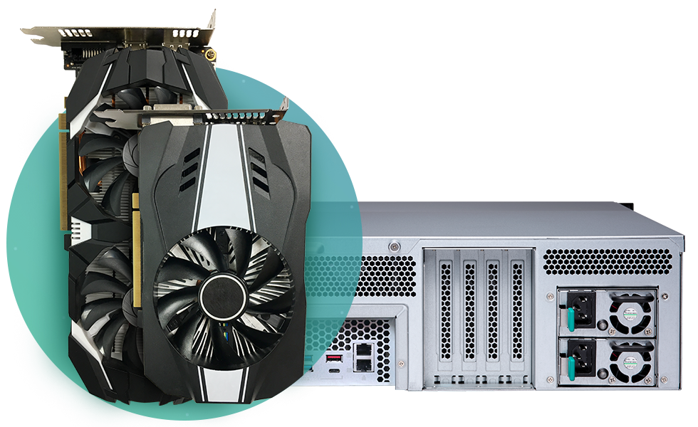 Com quatro slots PCIe, o TS-1677XU-RP permite que você insira até duas placas gráficas de última geração que funcionam de forma cooperativa para oferecer um incrível desempenho de processamento em comparação com uma única placa gráfica. Isso aumenta a possibilidade de acelerar o processamento de vídeo e a computação de GPU do NAS, permitindo o aprendizado de máquina de IA com uso intensivo de dados e a passagem de GPU para VMs.