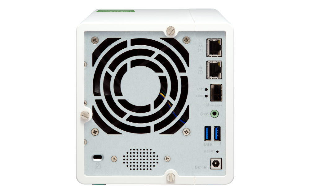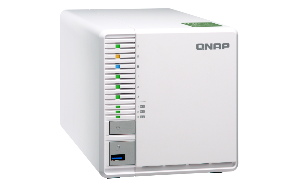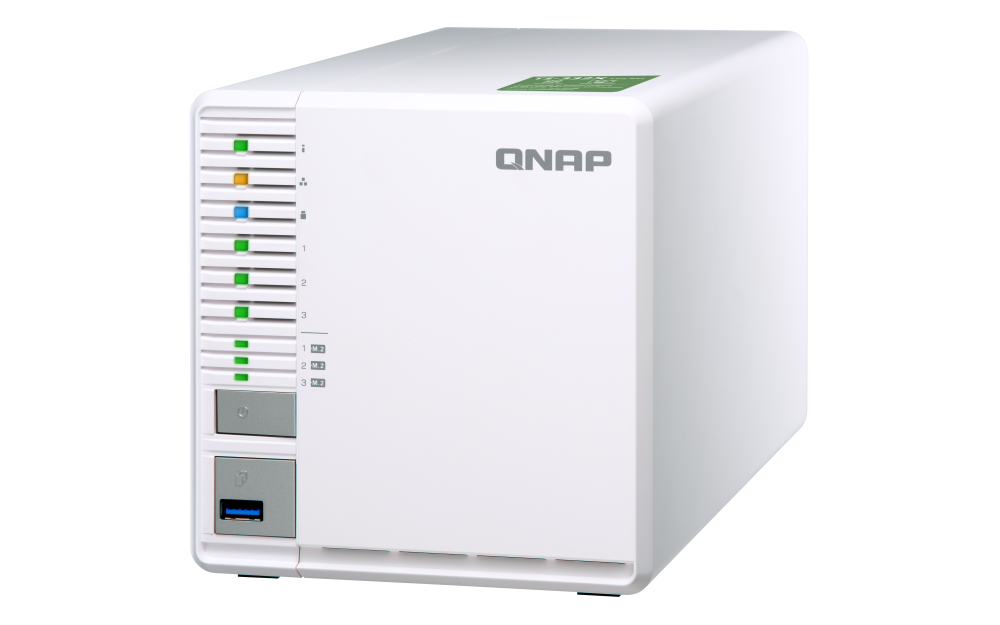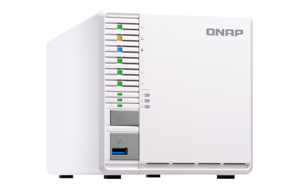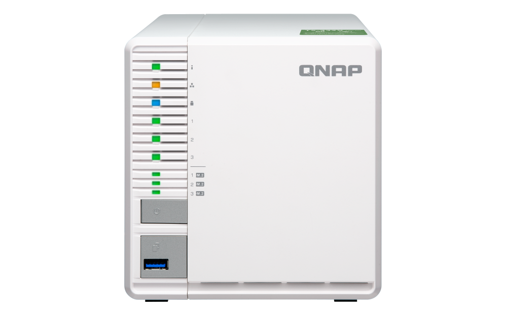 Unidades de estado sólido SATA de 2,5 polegadasÉ necessária uma base de tabuleiro de unidade de 2,5" (TRAY-25-NK-BLK03) para instalar um SSD/disco rígido de 2,5"Pode ser substituído em funcionamento (Não suporta SSD M.2) Ranhura M.2 3 ranhuras M.2 2280 SATA de 6 Gb/s O SSD M.2 é vendido em separadoSuporte de aceleração da cache de SSD Porta Ethernet Gigabit (RJ45) 2 Porta Ethernet 10 Gigabit 1 portas SFP+ de 10 GbE Wake on LAN (WOL) Jumbo Frame Porta USB 3.2 Gen 1 3 Saída de áudio 1 coluna integrada, 1 ficha de saída de linha de 3,5 mm (para amplificadores ou colunas) Não é possível utilizar simultaneamente as colunas e a ficha de saída de linha.Fator de forma Torre Indicadores LED Estado do sistema, LAN, USB, Disco rígido 1~3, SSD M.2 1~3 Botões Alimentação, Reiniciar, Cópia USB Dimensões (A×L×P) 142 × 150 × 260,1 mm Peso (Líquido) 1.64 kg Peso (Bruto) 2.69 kg Temperatura de funcionamento 0–40 °C Temperatura de armazenamento -20–70 °C Humidade relativa 5–95% HR sem condensação, termómetro molhado: 27 ˚C Unidade de fonte de alimentação Adaptador de 90 W, 100–240 V Power Consumption: Disk Standby Mode 18.56 W Consumo de energia: Modo de funcionamento, Típico 26.22 W Testado com unidades totalmente preenchidas.Ventoinha 1 ventoinha de 90 mm, 12 V CC Aviso do sistema Instruções de voz ou campainha Ranhura de segurança Kensington Garantia padrão 2 Número máx. de ligações simultâneas (CIFS) — com a memória máx. 700 Nota: Utilize apenas módulos de memória QNAP para manter o desempenho e a estabilidade do sistema. Para dispositivos NAS com mais do que uma ranhura de memória, utilize módulos QNAP com especificações idênticas e consulte o manual do utilizador do hardware para instalar módulos de memória QNAP compatíveis.