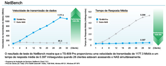 O TS-809 Pro pode servir como um NAS e servidor de destino iSCSI. A característica de destino iSCSI embutida oferece uma alternativa IP-SAN (Storage Area Network-Rede de Área para Armazenamento) mais acessível para SMB. Os gerenciadores do servidor podem configurar o NAS para expandir a capacidade de armazenamento para servidores de aplicação existentes, tais como servidor de banco de dados e servidor de correspondência de uma maneira econômica. Além disso, a característica inovativa "Virtual Space Allocation" (Alocação de Espaço Virtual; Thin Provisioning) é proporcionada e isso permite aos gerenciadores do servidor de alocarem flexivelmente a capacidade do iSCSI LUN (Número da Unidade Lógica) no início sem se importar com a capacidade de volume físico.