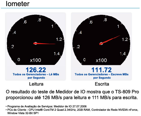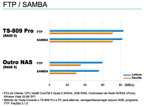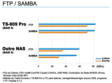 O TS-809 Pro é apresentado com CPU Intel Core 2 Duo 2.8GHz e memória 2GB DDRII. Ele suporta RAID 0/ 1/ 5/ 6/ 10/ 5+Adicional, JBOD, expansão da capacidade RAID on-line, e migração a nível RAID on-line.