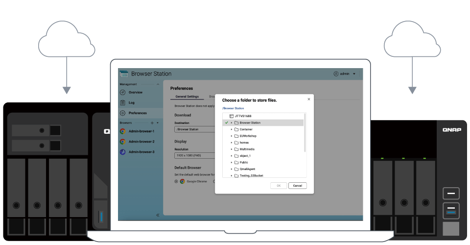 Browser Station bietet virtuelle Browser auf dem QNAP NAS, mit denen Sie von extern auf geschützte Daten im selben LAN wie das QNAP NAS zugreifen können, ohne sich mit komplizierten VPN Einstellungen beschäftigen zu müssen. Es ist einfach, bequem und sicher.