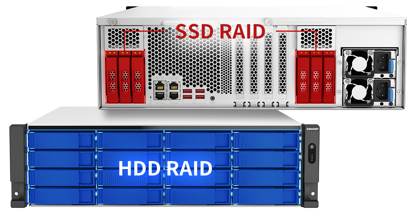 QNAPはハード/ソフトの両面でハイブリッドストレージのパフォーマンスを最大限発揮するデザインを採用しています。