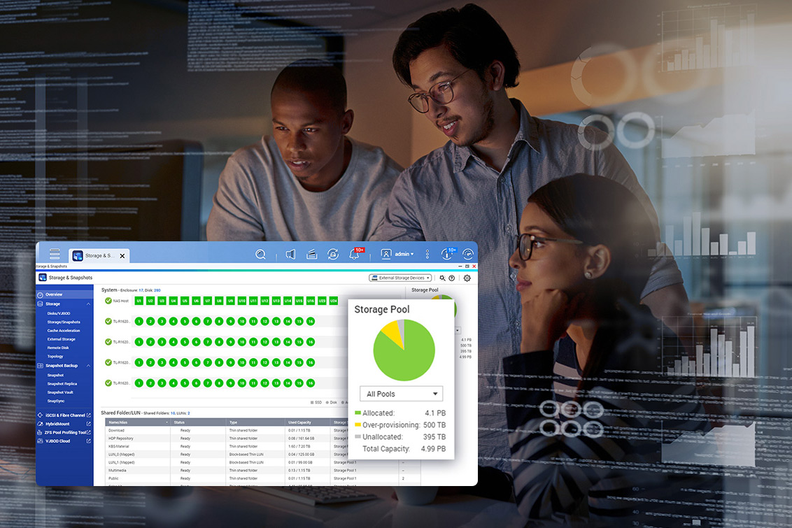 QNAPの大容量ストレージに採用されているZFS OS「QuTS hero」は、高いデータ保護とストレージパフォーマンスを実現しつつ、IT管理者の作業を効率化する機能・技術を搭載しています。ここではその一部をご紹介します。