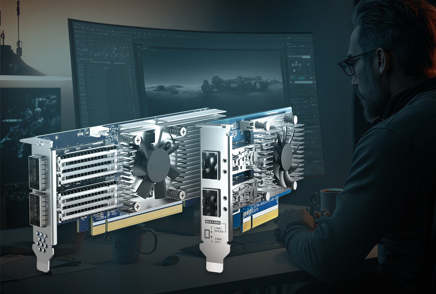 映像制作現場で人気の25GbEカードをはじめ、最大100 GbEまでラインナップがございます。将来の基幹ネットワークのアップグレード時にも拡張カードの追加で対応可能です。