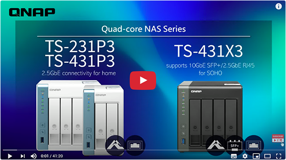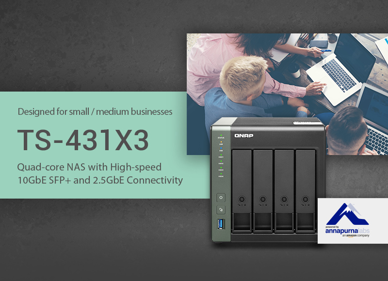 The quad-core TS-431X3 features 10GbE SFP+ and 2.5GbE RJ45 ports, enabling businesses to deploy a high-speed network environment. Providing a wide range of features including comprehensive local, off-site and cloud backup with secure Snapshot technology, the TS-431X3 is perfect for businesses that require high bandwidth for intensive data transmission. |